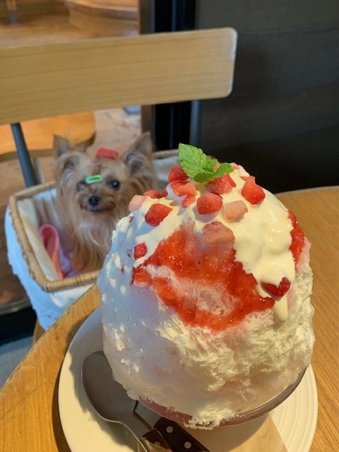 雪くま活 雨続きでおさんぽもおでかけも行けなくて飽きてるびびたんときょぅは雪くま活に🍧テラスOKの「PUBLIC SWEETS TART&PIE」さんへストロベリーフロマージュ🍧スイーツみたいなかき氷おいしかったです😊びびたんにはちょうどランチ時間だったので持参のおひるごはんをーたのしいプチおでかけになりましたー😄