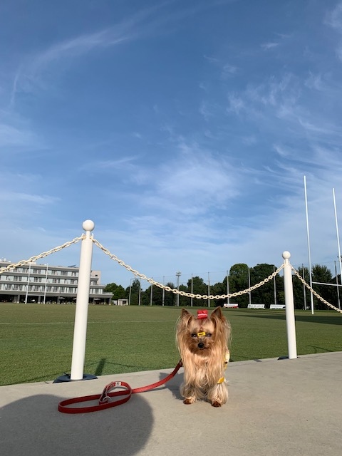 早朝おさんぽから朝ンポへ 今朝は涼しいです肌寒いくらいだったので7時半前くらいからおさんぽに風が秋の風です冷たかったぁ😄💦濡れた芝生に入って足先が濡れたらプルプルになってしまったびびたん入ったらダメだょー冷たいょー冷えちゃうょーって言ったんだけど頑固なほどきかないびびたん笑それからは歩かなくなってしまいました駐車場そばではじめましてーのヨーキーのチャコちゃんに会いましたとたんに元気になって ごあいさつしたりクンクンしたり遊んでもらいましたまた会えたらいいねー😊
