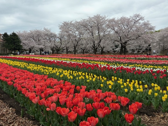 桜とチューリップの共演🌸🌷